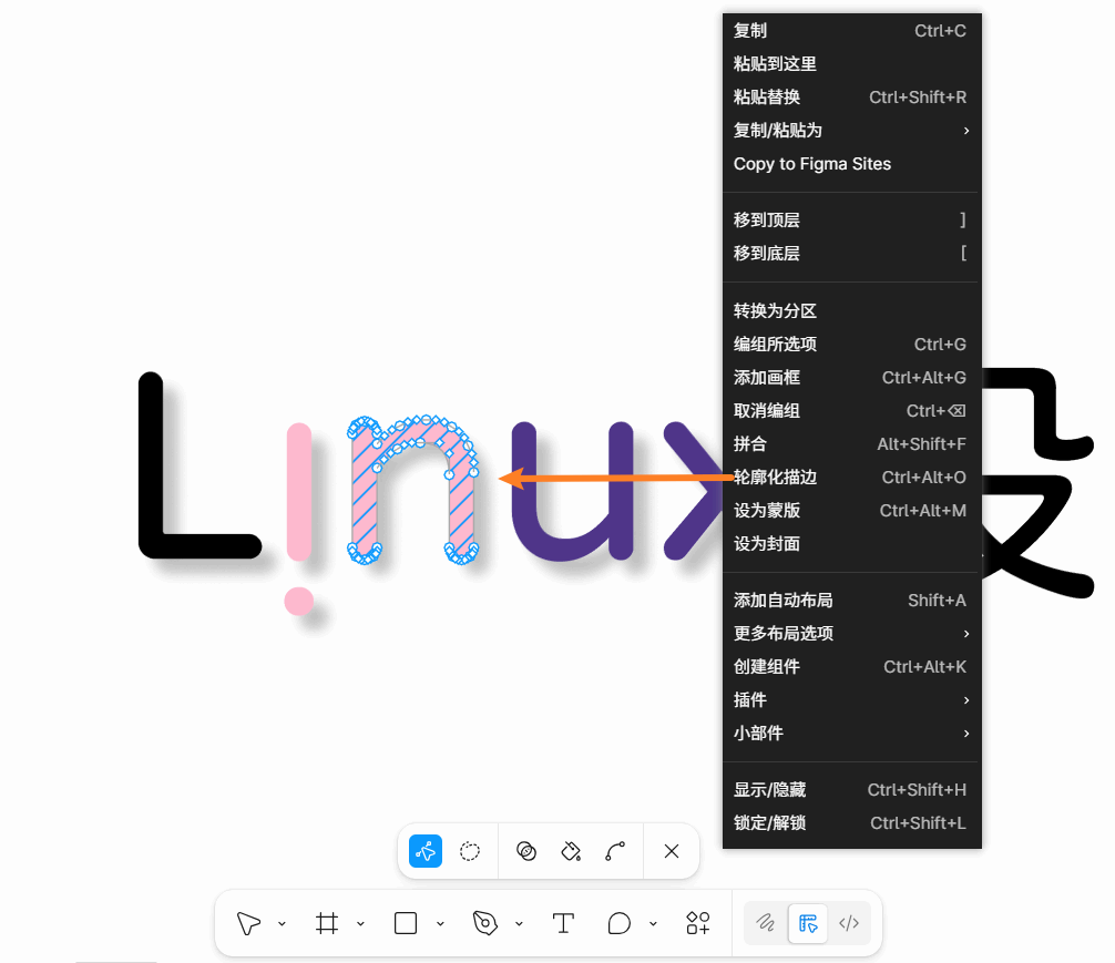 - Figma的交互设计比较有趣的一点就是,特定的工具只有在激活的时候才会出现,非激活状态或者不可用状态下是完全隐藏的。