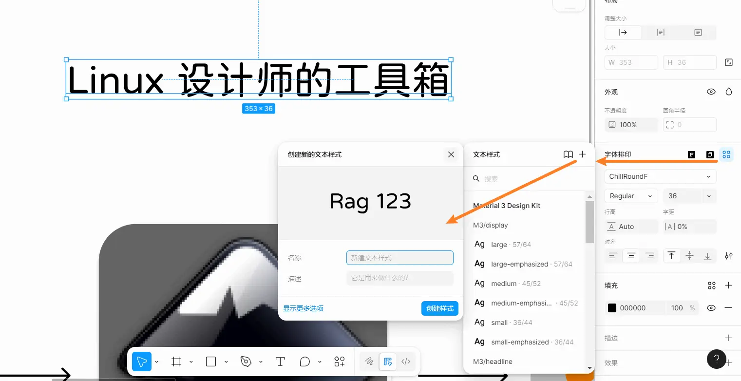 | figma可以创建文本样式与组件以便复用 | 文本转化为矢量(Flatten Selection)进行编辑 |