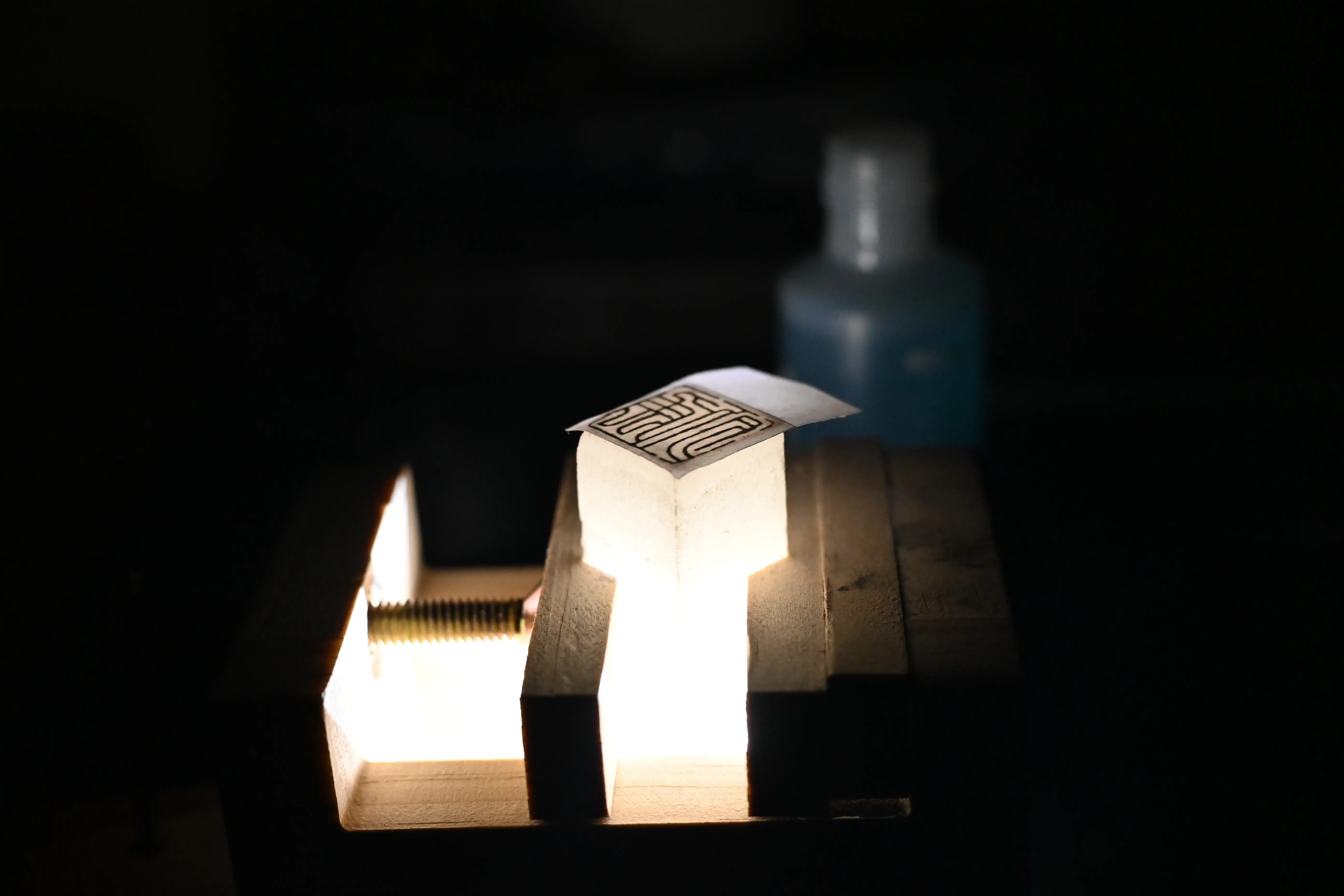 - 用水打湿此纸,贴到印面上